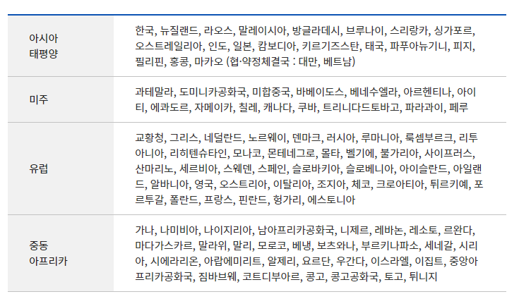 국제운전면허증 사용 시 유의사항, 사용 가능 국가