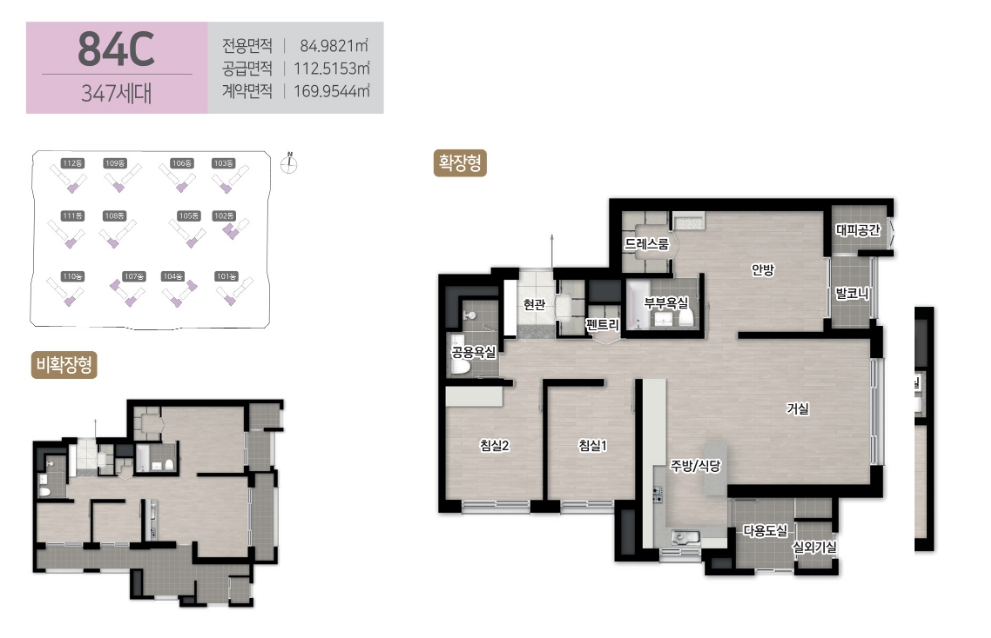 이 아파트에는 다음과 같은 타입이 준비되어 있습니다.