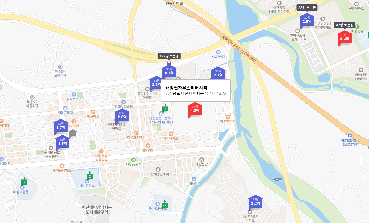 | 배방 필하우스 리버시티 | 112㎡ | 4억 4,750만원 |