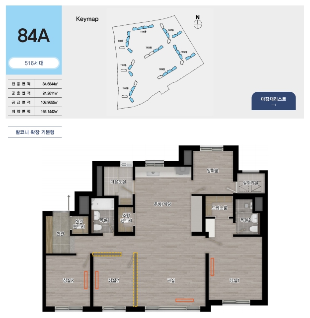 따라서 84A 타입 기준으로 모든 옵션을 선택할 경우 총 매수가격은 약 4억7,894만원으로 예상됩니다.