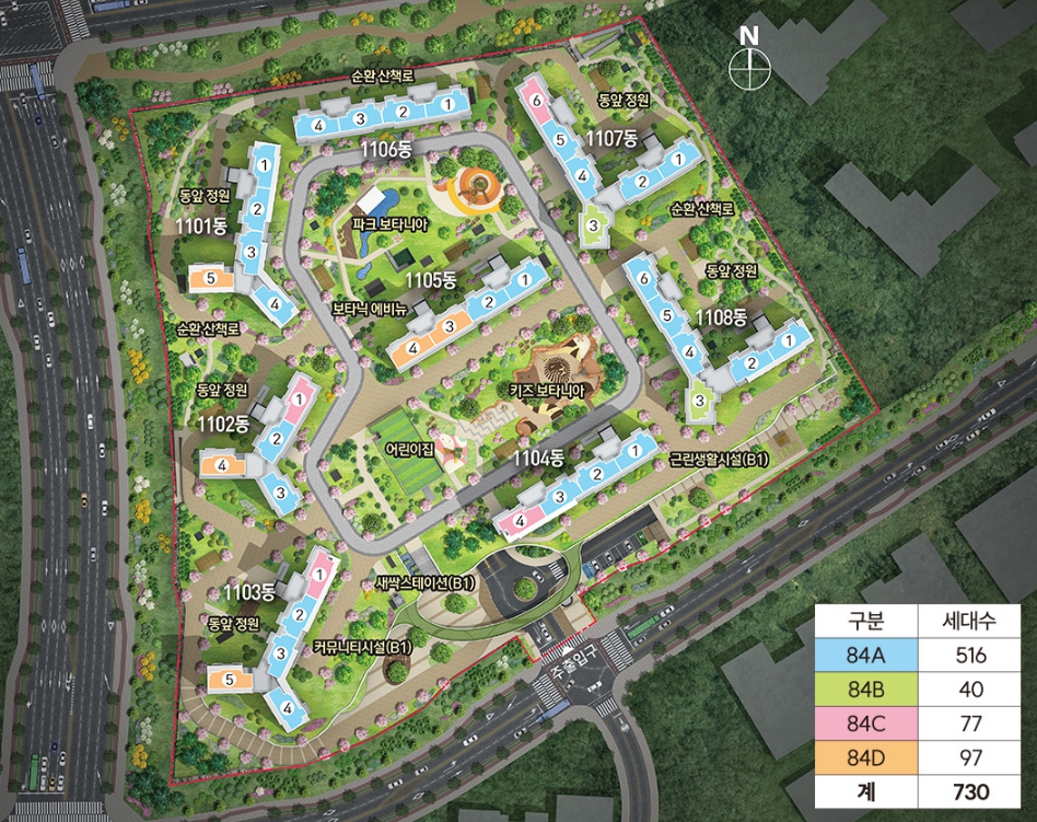 | 주차대수 | 1,022대(세대당 1.4대) |