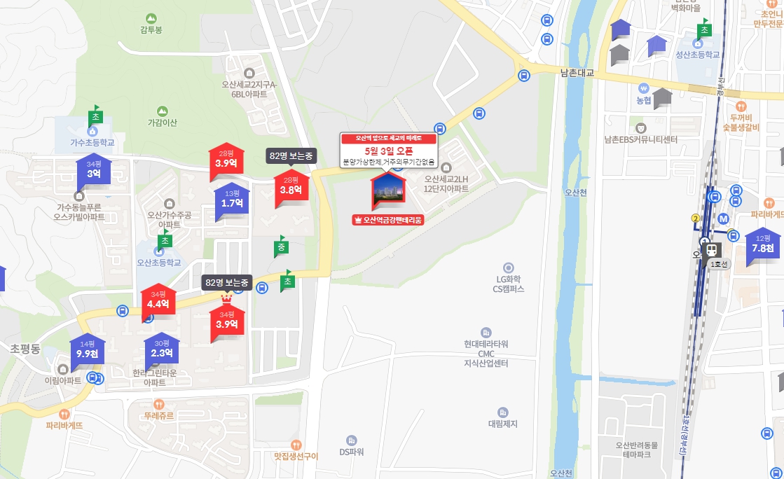 84㎡ 기준 신축 아파트 시세가 3억 후반~4억 초중반임을 고려할 때 오산역 금강펜테리움 센트럴파크의 분양가는 주변 시세보다 살짝 저렴한 편으로 보입니다.