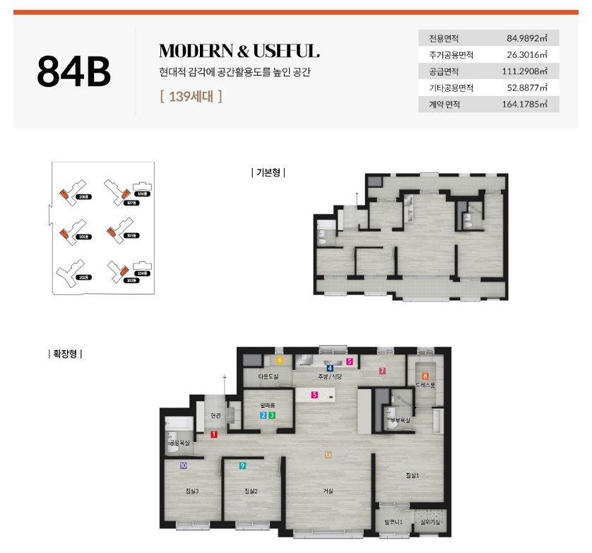 | 84B | 거실+침실1+침실2+침실3+제습기(드레스룸) | 8,360,000원 |