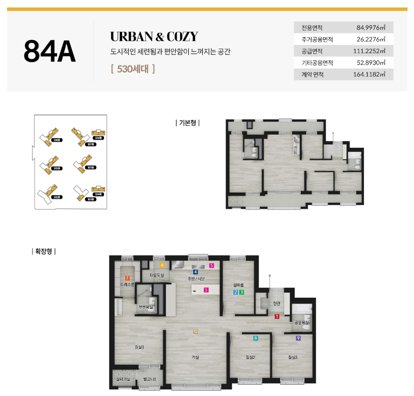 | 84A | 거실+침실1+침실2+침실3+알파룸+제습기(드레스룸) | 9,570,000원 |
