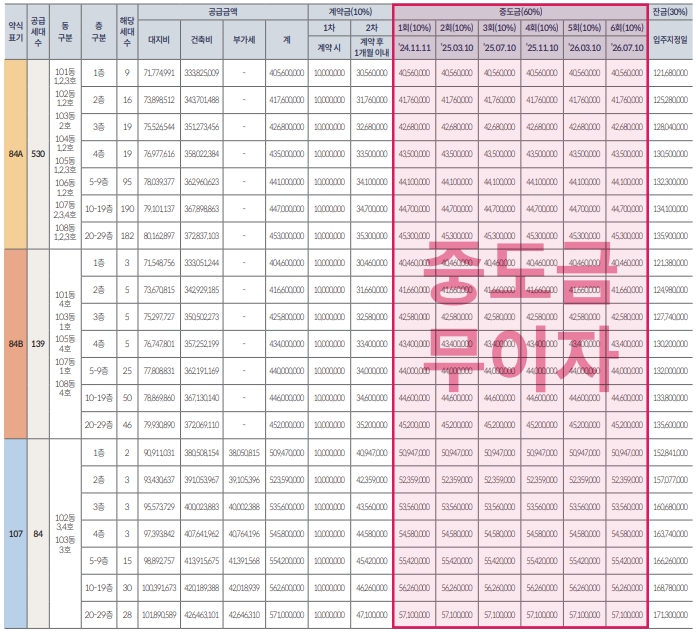분양가 수준은 84A 타입 4억 5,300만원, 84B 타입 4억 5,200만원, 107 타입 5억 7,100만원입니다.