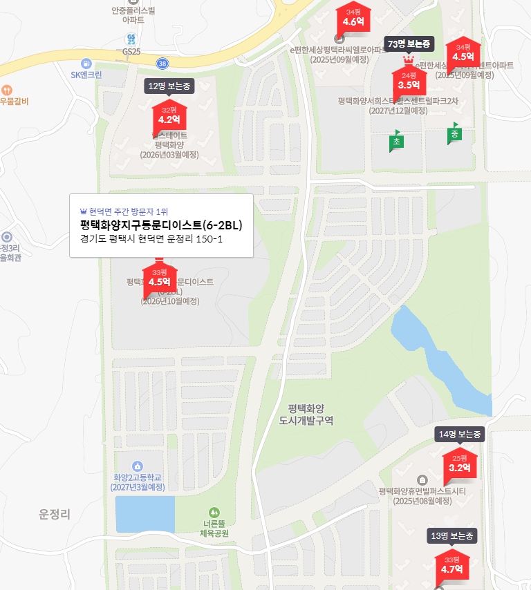 | 포레나평택화양 | 5억 7,510만원(39평, 24층) |