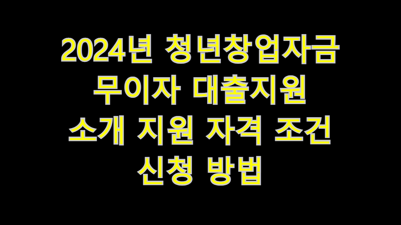 2024년 청년창업자금 무이자 대출지원 소개 지원 자격 조건 신청 방법