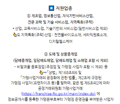 | 제외 업종 | 담배 도소매업, 주점업, 가맹점 사업자 등 |