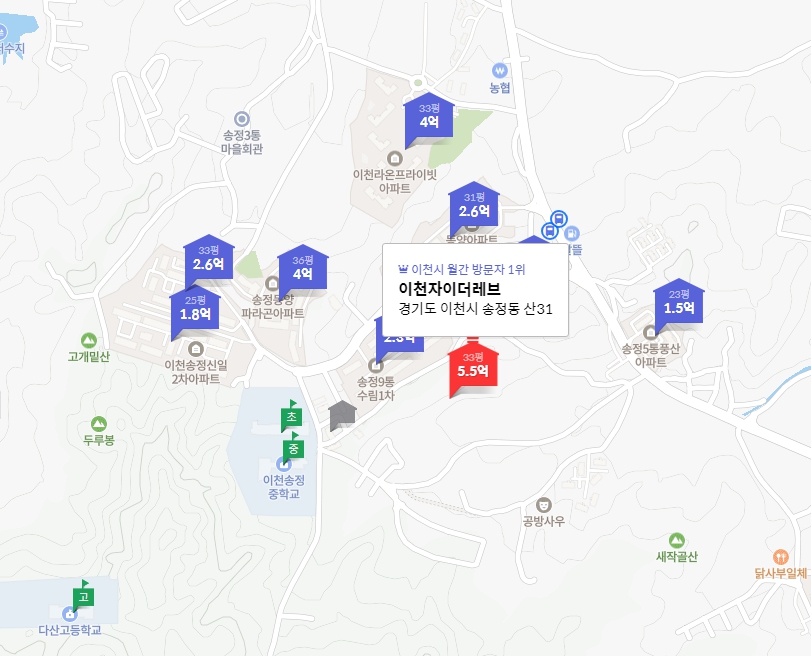 | 이천자이더파크 | 34평 | 5억910만원(2024년 4월) |