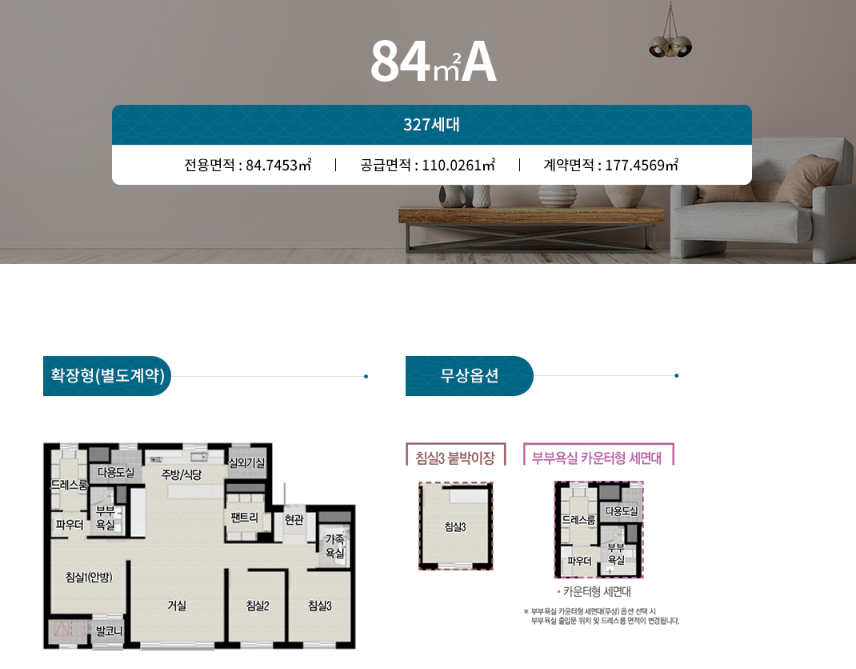 84A타입을 기준으로 했을 때, 분양가 최고가 5억5,700만원에 발코니 확장비 1,470만원, 시스템 에어컨 옵션비 732만원을 합하면 총 매수가격은 5억7,902만원으로 예상됩니다.