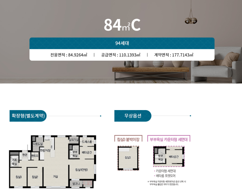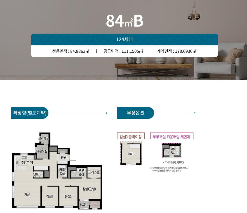 이천자이 더 레브의 다양한 주택형은 다음과 같습니다.