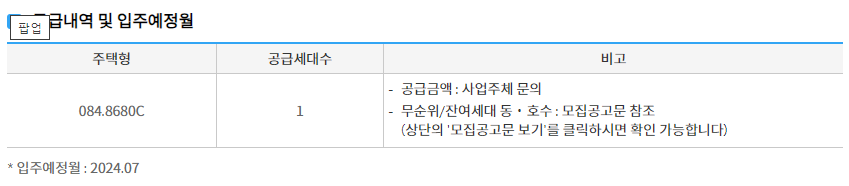 | 무순위 공급 물량 | 84㎡C 1세대 (501동 1201호) |