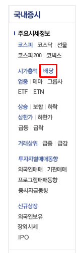 그리고 왼쪽 메뉴 중에서 '배당'이 보이실 겁니다. 여기를 갑니다.