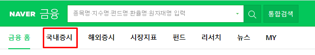 먼저 네이버 금융으로 갑니다. 그리고 나서 위의 메뉴 중에서 '국내증시'를 선태합니다. 사실 MTS에도 이런걸 제공하는 곳들도 있지만 제일 간단하게 조회가 되는 곳은 여기가 아닐까 합니다.