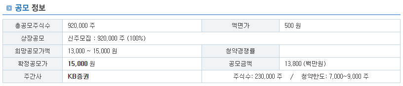 이런 결과를 바탕으로 최종 공모가는 희망 밴드의 상단인 15,000원으로 확정되었습니다. 최근 시장 동향을 보면 공모가가 밴드 상단을 초과하지 않는 경향이 있어, 이 부분은 투자자들에게 다행스러운 요소라고 생각됩니다.