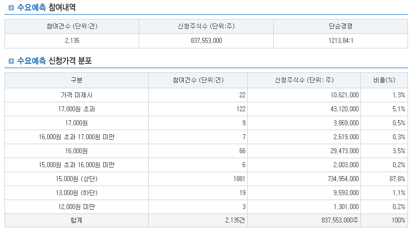 | 수요예측 경쟁률 | 1,213.84대 1 |